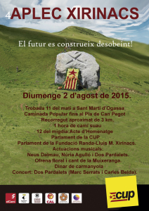 L’homenatge a Lluís Maria Xirinacs es realitzarà el proper diumenge 2 d’agost al Pla de Can Pegot (Ogassa) organitzat per l’Assemblea de la Candidatura d’Unitat Popular (CUP) de Sant Joan