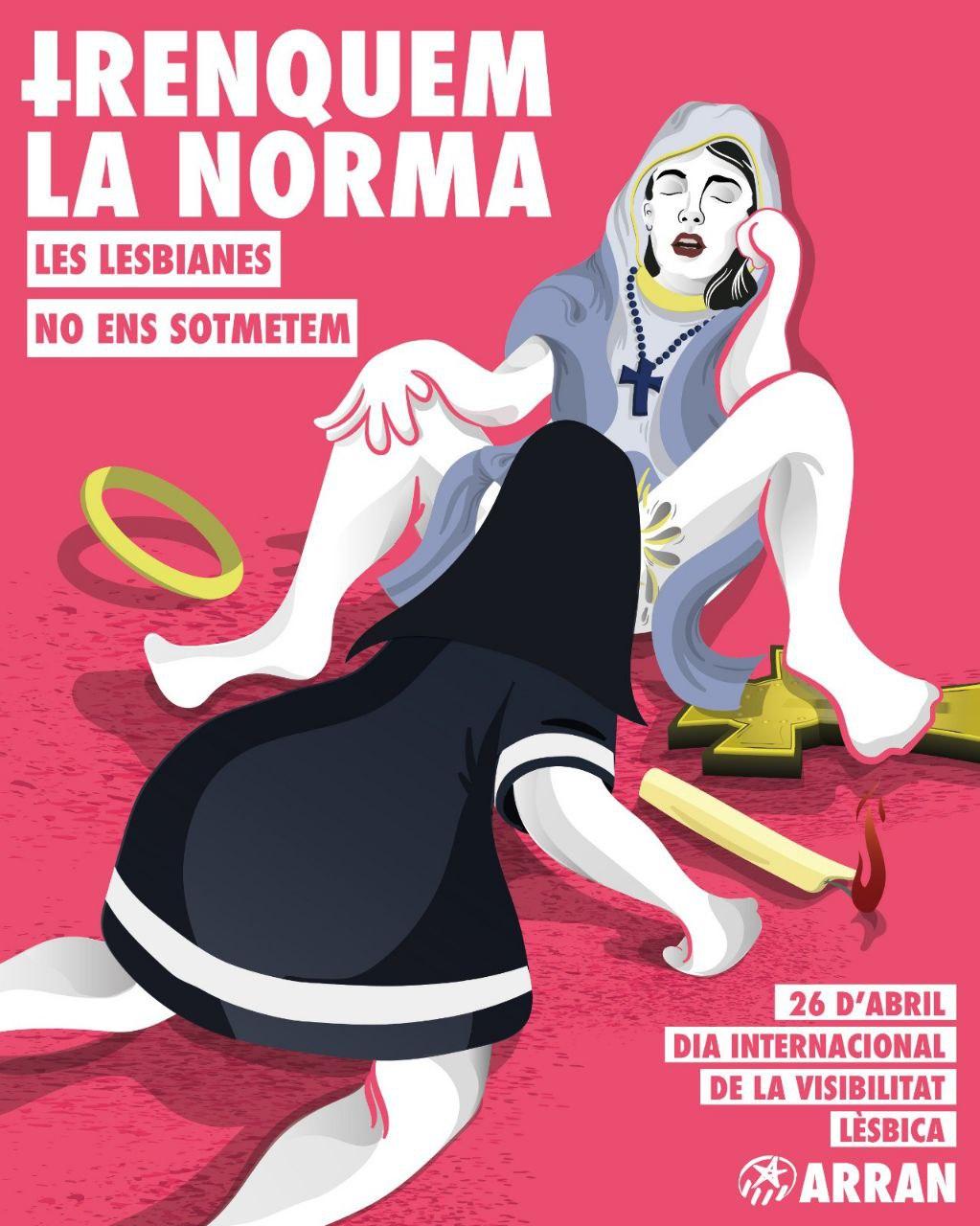 El 26 d’abril ens visibilitzem. Fer-ho significa plantar cara a la imposició dels rols de gènere, la família nuclear, l’Església i el matrimoni. Perquè significa visibilitzar que la lesbofòbia és violència masclista i que travessa tant els espais públics com privats, laborals i polítics. Ho fem perquè és una pràctica que qüestiona la família nuclear i la parella monògama. Perquè cal combatre els discursos d’odi, perquè cal plantar cara a l’ultracatolicisme i perquè el Dia de la Visibilitat Lèsbica és lluitar pel dret al propi cos, contra l’Estat i l’Església i per a una sexualitat més lliure.