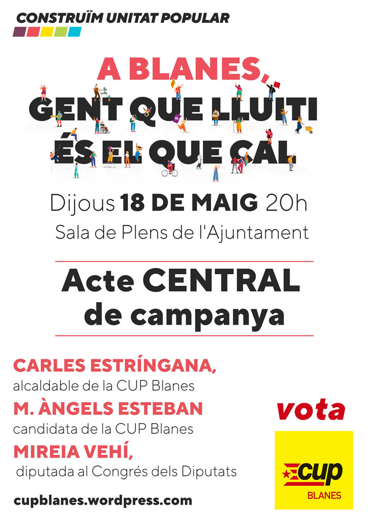 Més informació a l’esdeveniment i al web de la CUP Blanes.