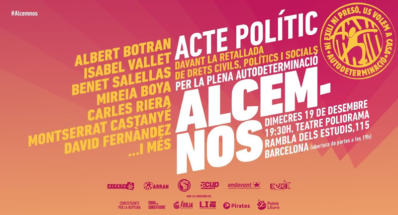 La brúixola és als carrers! Per aquest motiu, cal que s’iniciï un cicle de mobilitzacions i protesta i crear un front ampli de lluites en defensa dels drets civils, polítics i socials i per l’exercici del dret a l’autodeterminació i la plena sobirania. Alcem-nos!