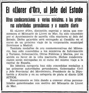 Lloret de Mar, 27 d’agost de 2015. Denunciem l’existència en vigor de distincions honorífiques al màxim nivell atorgades a Franco i d’altres alts càrrecs franquistes i demanem la retirada immediata,