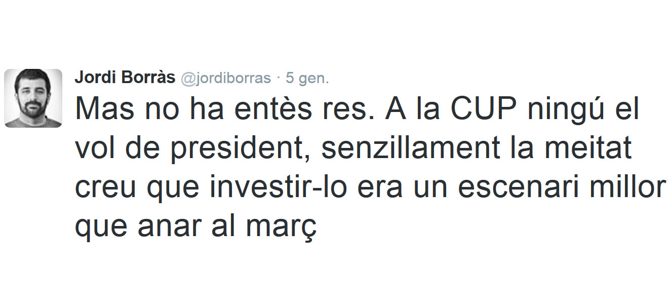 La piulada del fotoperiodista Jordi Borràs ha arribat gairebé al miler de retuits Ahir el fotoperiodista Jordi Borràs va fer una piulada amb el text: “Mas no ha entès res. … Llegiu més