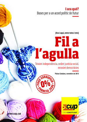 La Candidatura d’Unitat Popular ha decidit fer públic el document «I ara què? Fil a l’agulla». La publicació, de la qual se’n farà una tirada 50.000 exemplars, explica la postura i els plantejaments de la CUP en les negociacions.