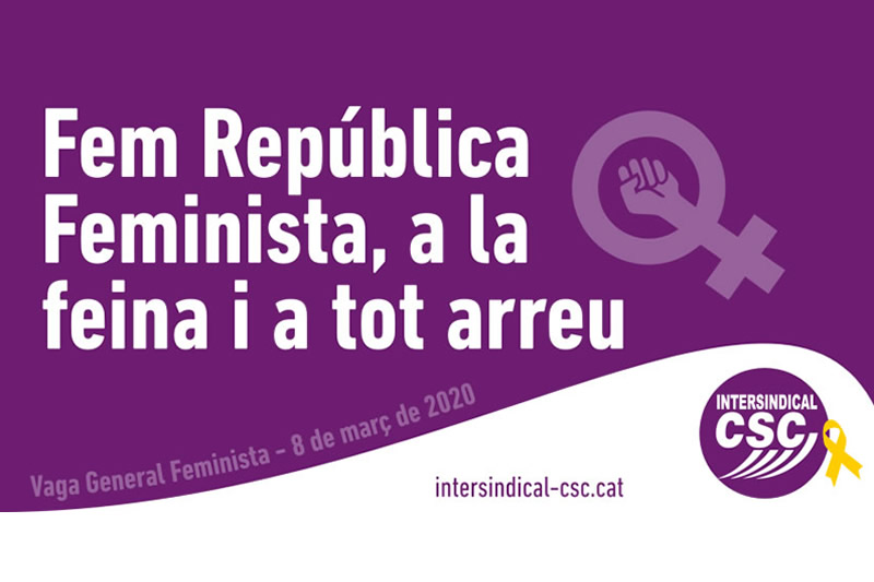 La Intersindical-CSC ha presentat el preavís de vaga general pel pròxim 8 de Març amb el lema: «Fem República Feminista, a la feina i a tot arreu». Aquesta decisió s’ha pres després que el moviment Vaga Feminista, en el qual el sindicat republicà hi participem, hagi decidit convocar vaga aquest 8 de març.