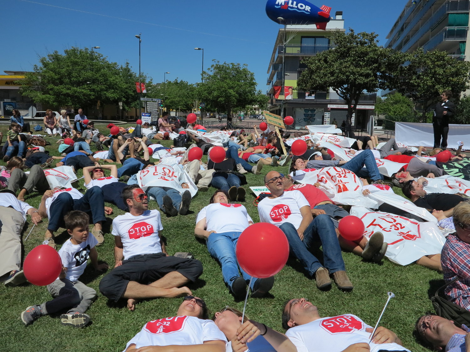 L’acte, molt vistós, ja que els manifestants anaven carregats amb pancartes, globus i creus de fusta, ha servit també per repartir fulls informatius als ciutadans i als conductors quan s’aturaven en els semàfors.