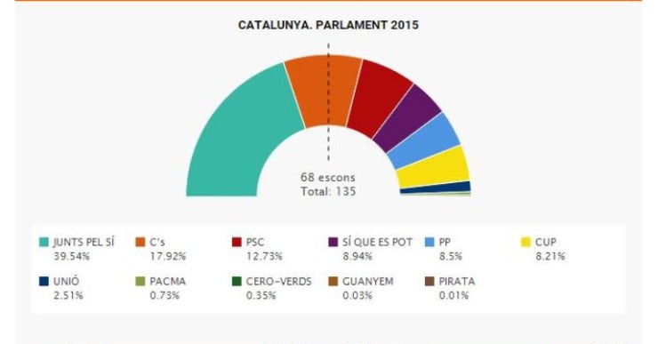 Tot i que no s’arriba doncs a la majoria absoluta, en qualsevol cas Junts pel Sí ha guanyat a totes les demarcacions i la CUP ha consolidat el seu espai arreu del país.
