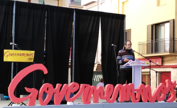 L’acte va començar amb la lectura d’un text d’Ovidi Montllor per donar pas, tot seguit, pas a les intervencions polítiques. Fou Anastasio Pulido, membre de la CUP de Blanes i onzè candidat a comarques gironines, qui va iniciar els parlaments amb una emotiva revisió històrica sobre el significat de la ruptura i com aquesta ha esdevingut “una assignatura pendent de les classes populars”. Pulido va remarcar que “cal ser presents i forts tant a dins com a fora de les institucions, perquè la independència, la ruptura i el projecte de la unitat popular només serà possible amb una permanent mobilització al carrer”.
