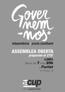 CUP Lloret farà Assemblea Oberta dilluns 7 per preparar el 27S