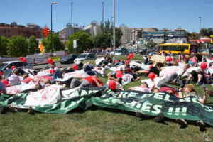 La Plataforma Aturem l’Autopista C-32 ocupa simbòlicament la rotonda d’accés principal de Lloret
