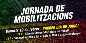 Primer dia de judici 12h Aturada davant dels llocs de treball 19h Concentracions a tot el país
