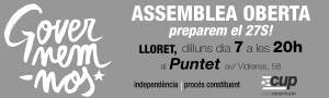 La nostra formació anuncia la convocatòria d’una Assemblea Oberta per dilluns 7 de setembre a les 8 del vespre al Puntet de l’avinguda de Vidreres número 58. Disposeu de més
